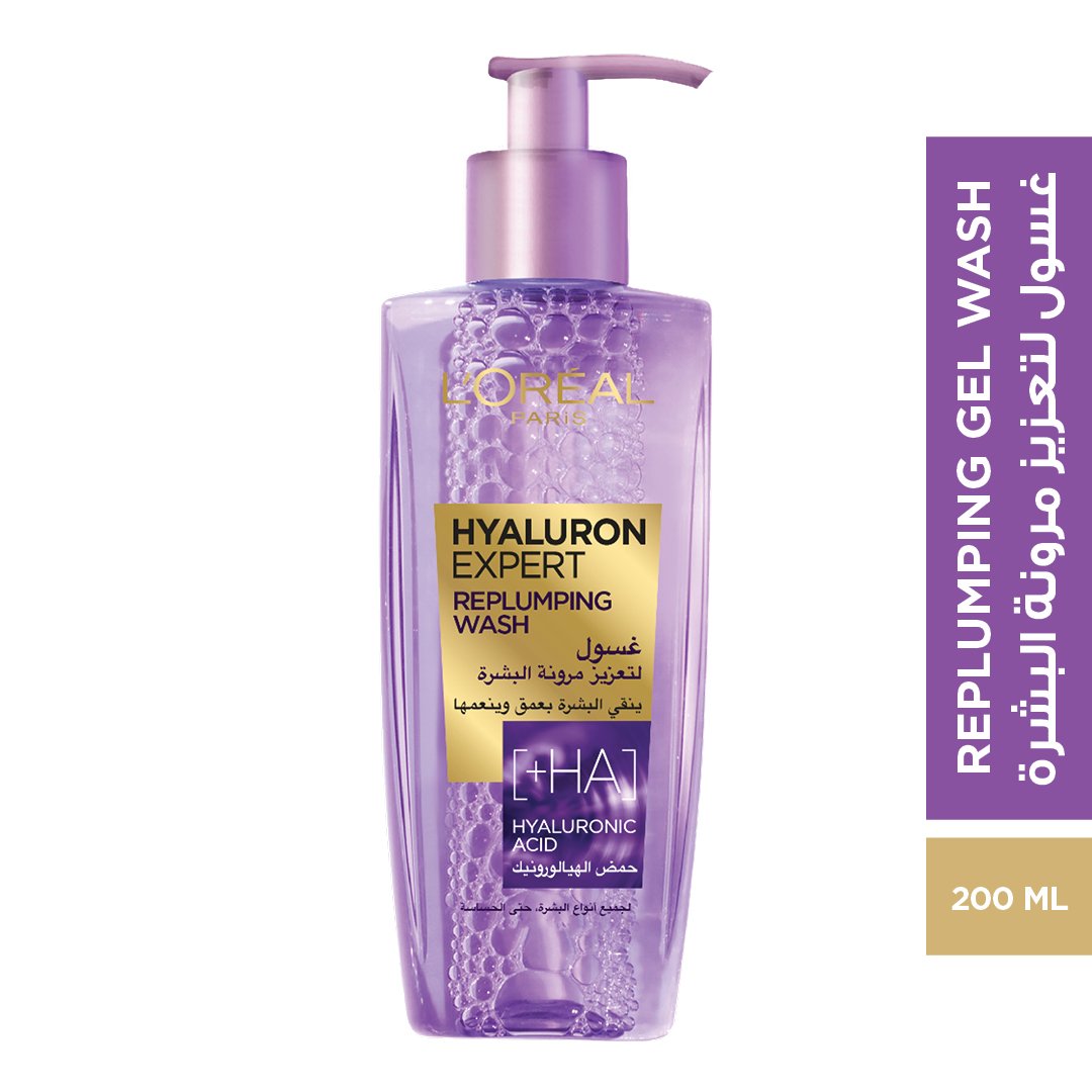 Hyaluron Expert Replumping Face Wash from L'Oréal Paris rehydrates, smoothes, and deeply purifies skin. A powerful dermatological active known for its replumping properties in anti-ageing care. Purified and refreshed, skin is hydrated and softer. Skin is replumped with moisture.