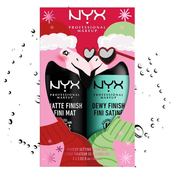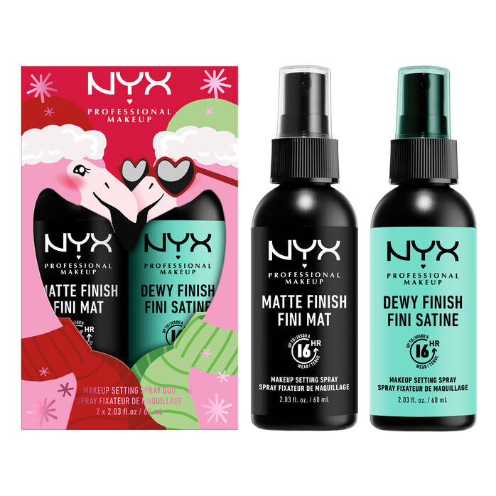Are you ready? Set. Sleigh! (OOPS! We mean spray!). The setting spray duo that will have you & your loved ones' looks last all season long! This year we are taking the festivities to the coast. Get your golden hour dew or matte mistletoe look that lasts. This duo will be your FA. LA. LA. LA. go-to! Whether you want to spritz on the spray that keeps you glistening not greasy or make sure you are matte not melting, this duo is for you. Our flamingos have you ready to flamin-go-go throughout the szn. Even the hottest Cali sun has nothing on your festive glam! As if your look wasn't complete yet...we stuck to our NYX values with vegan & cruelty free formulas ready for you to take on the holidays.