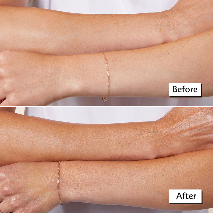 -For an even tan, exfoliate and hydrate the skin 24 hours before use, particularly where the skin is dry (elbows, knees, ankles, etc.).